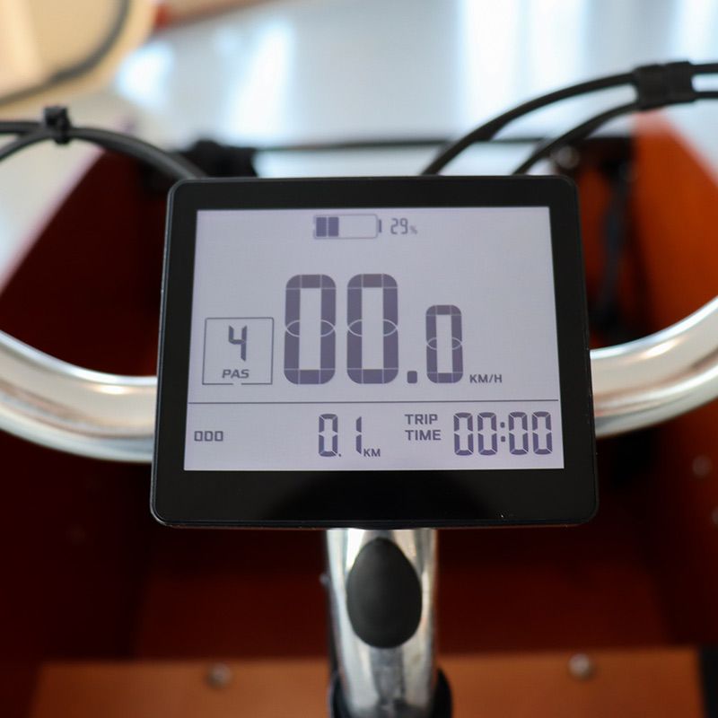 Das Babboe Curve-E ist mit fortschrittlichen Bremsen und einer elektrischen Tretunterstützung (8 Modi) ausgestattet.